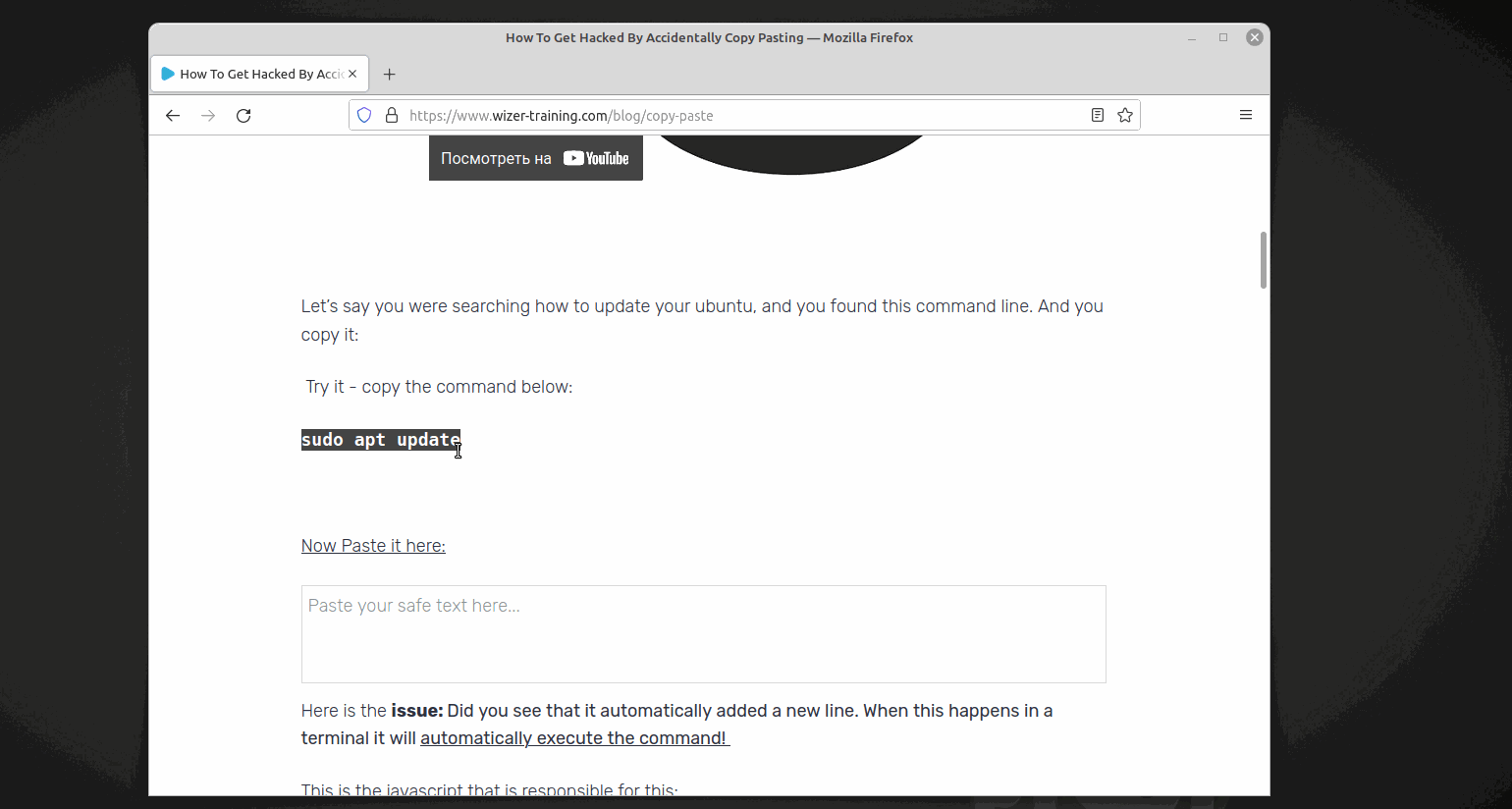 Недавно Габриэль Фридландер, основатель обучающей платформы Wizer по повышению осведомленности о безопасности, продемонстрировал очевидный, но удивительный способ взлома, который заставит вас остерегаться копирования и вставки команд с веб-страниц.