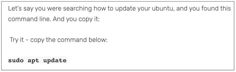 У тех, кто вставлял текст, могло создаться впечатление, что они скопировали знакомую безобидную команду sudo apt update, которая используется для получения обновленной информации об установленных списках пакетов.