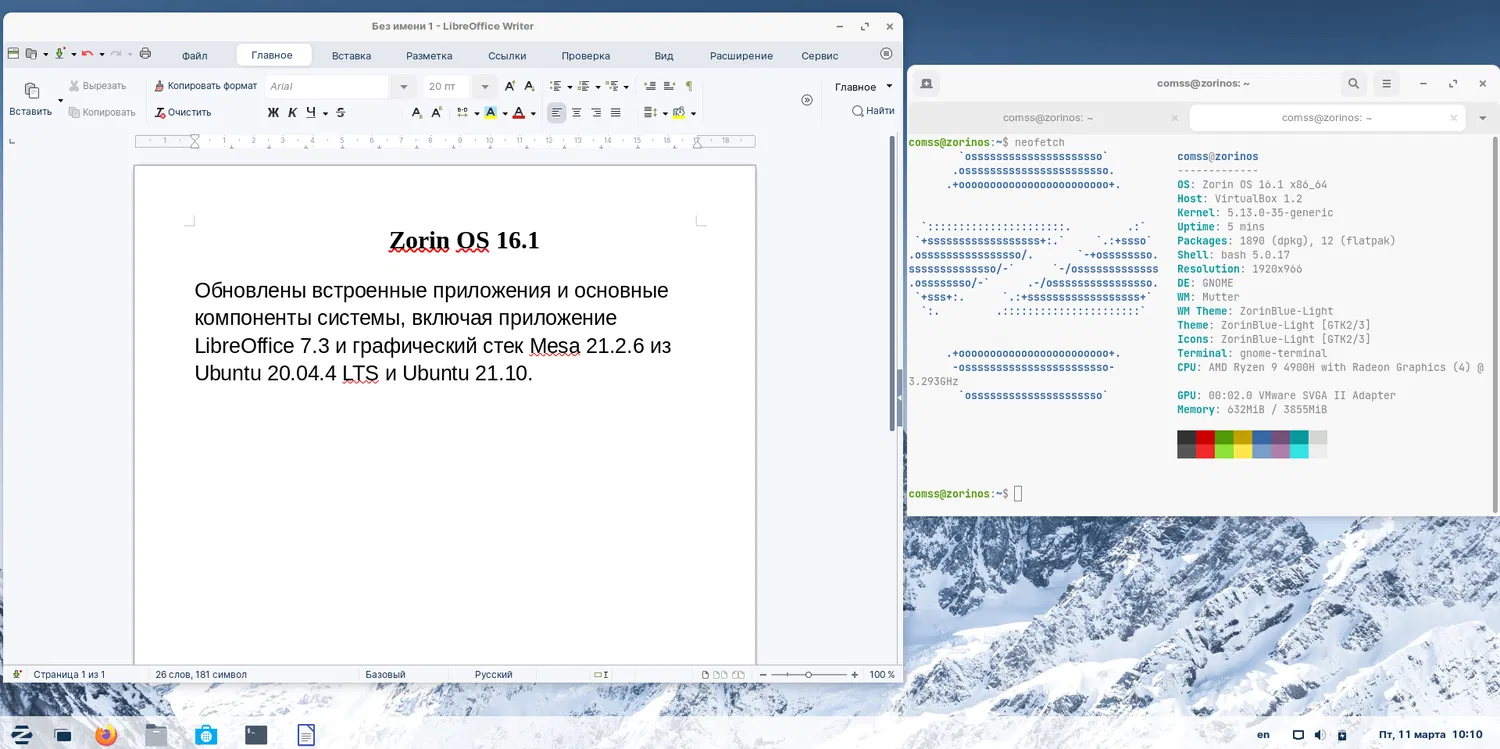 Обновлены встроенные приложения и основные компоненты системы, включая приложение LibreOffice 7.3 и графический стек Mesa 21.2.6 из Ubuntu 20.04.4 LTS и Ubuntu 21.10.