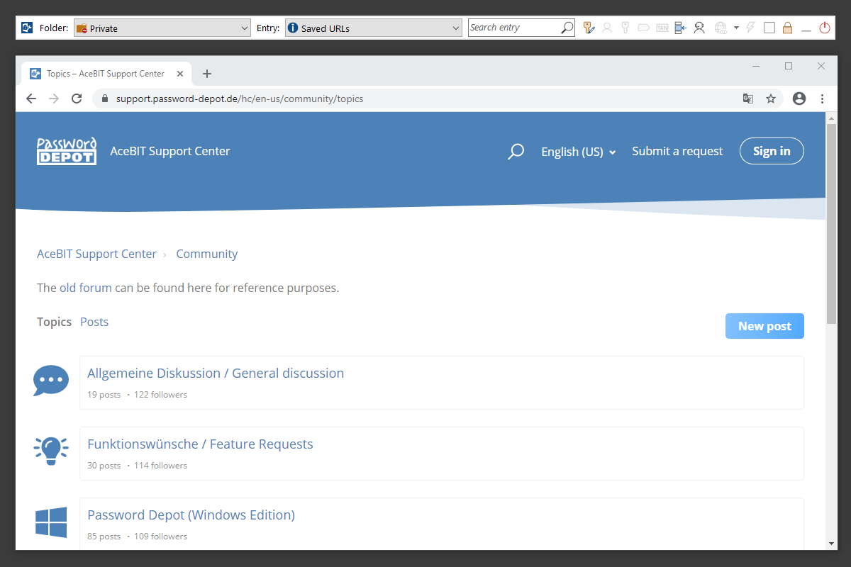- Только для AceBIT Password Depot версии 15 для Windows – доступны обновления только в рамках версий 15.x.