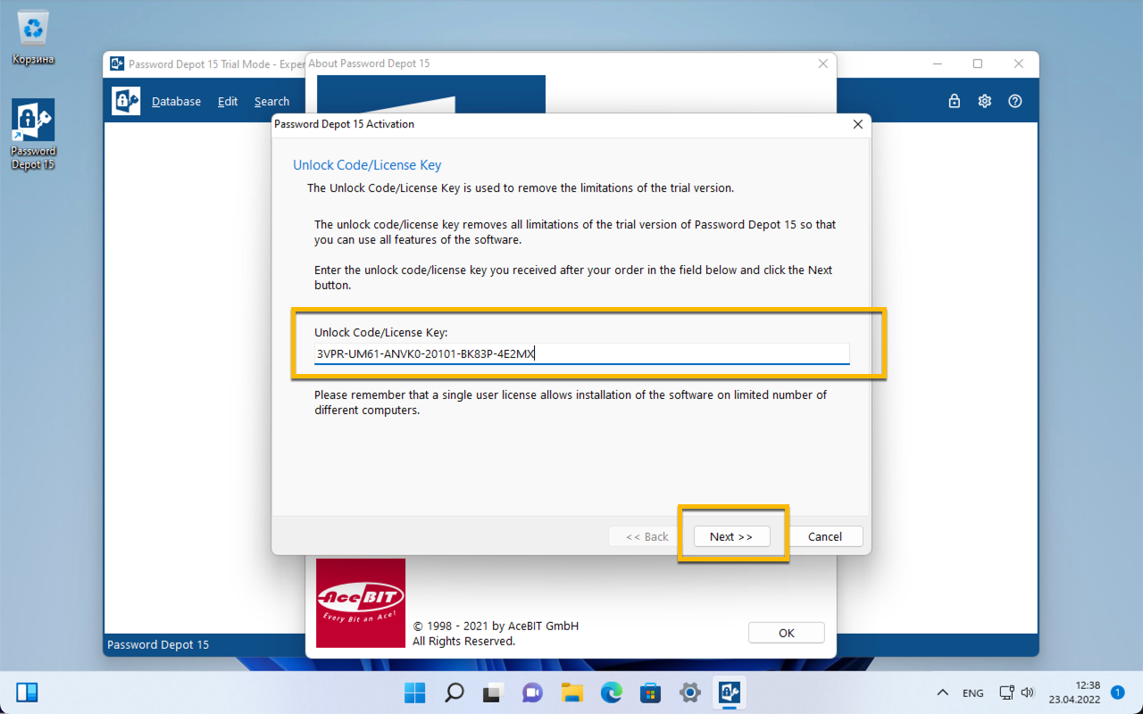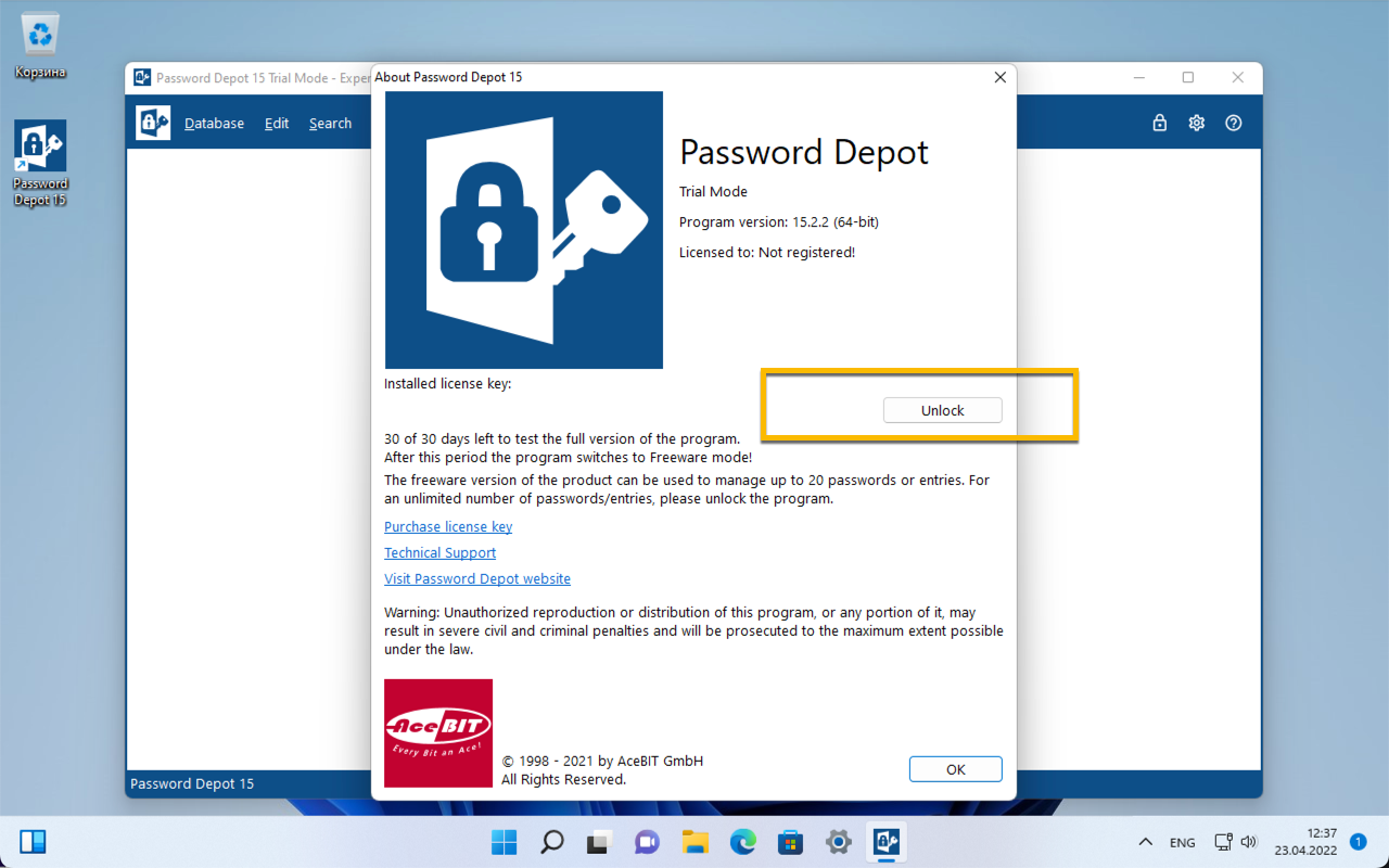 Для получения бесплатной лицензии AceBIT Password Depot 15 выполните следующее: