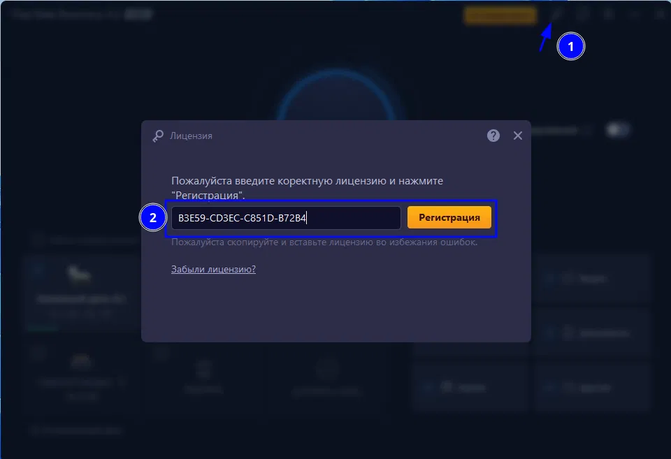2. Активируйте Pro-версию в меню регистрации, используя следующий лицензионный код: