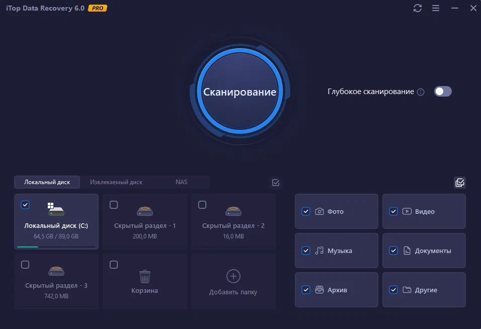 iTop Data Recovery Pro – полезная программа для восстановления удалённых файлов. С её помощью вы сможете найти и восстановить удалённые файлы на всех типах носителей, включая SSD-накопители, жесткие диски, USB-накопители и карты памяти.