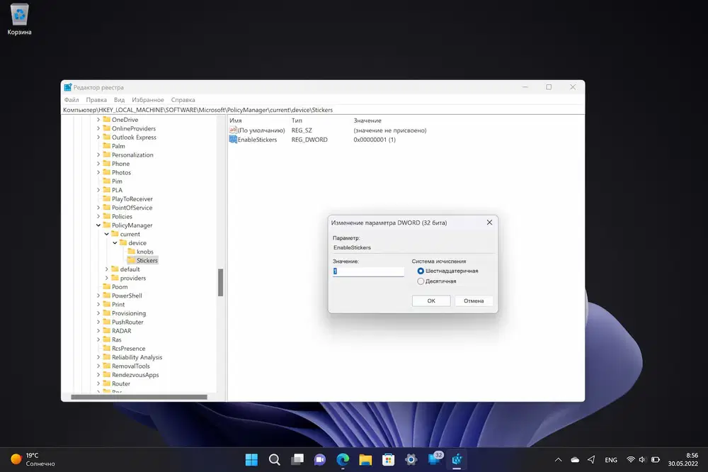 Как включить поддержку стикеров на рабочем столе Windows 11, версия 22H2
