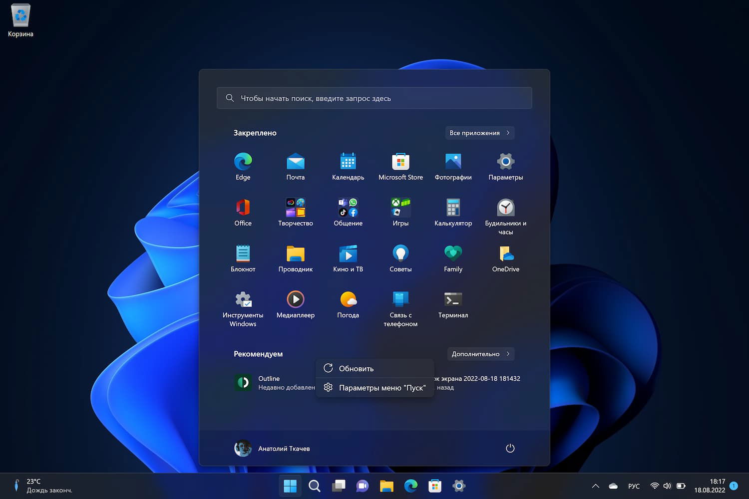 Пользователи Windows 11, которые открывают меню «Пуск» впервые не заметят особых различий. На первый взгляд, стартовой меню выглядит также, как и в первоначальной версии Windows 11.
