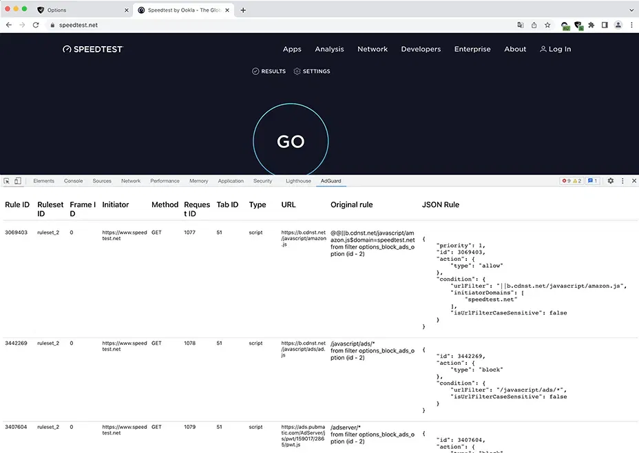 Браузерное расширение AdGuard на базе Manifest V2 имеет журнал фильтрации, в котором отображаются все запросы, отправляемые браузером, и подробная информация о них. В частности, вы можете увидеть, какое правило фильтрации использовалось для блокировки того или иного правила.