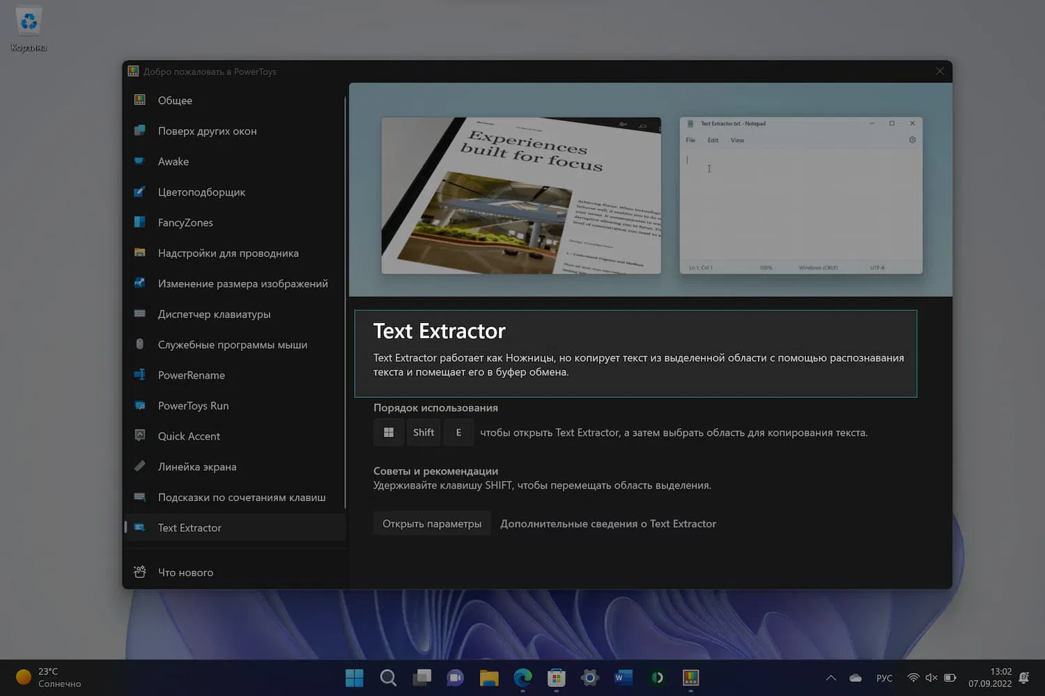 Для вызова инструмента можно использовать сочетание клавиш Win+Shift+T. Экран становится серым, и вы можете нарисовать прямоугольник вокруг целевой области с помощью мыши. Текст автоматически идентифицируется и копируется в буфер обмена.