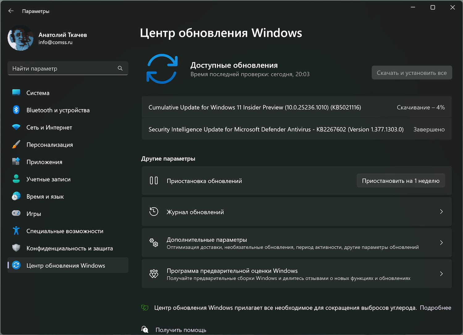 Windows 11 build 25236: Установка через Центр обновления Windows