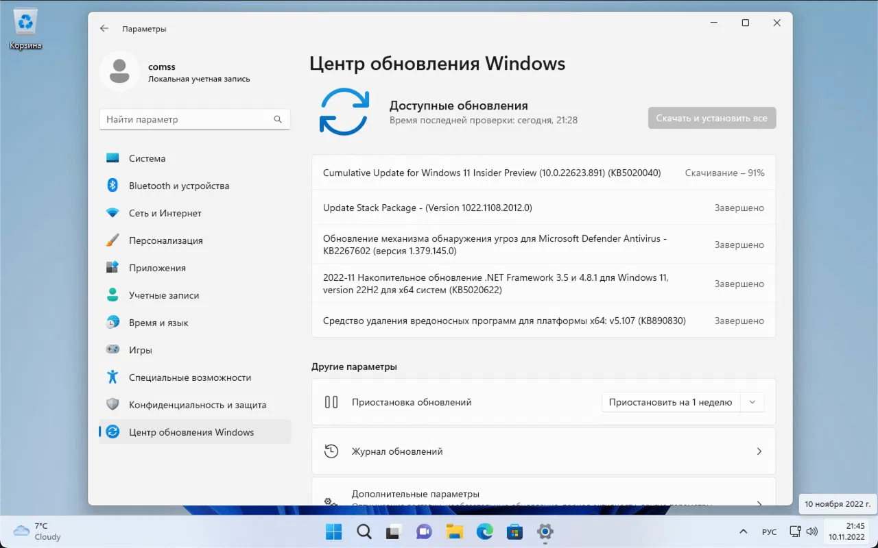Перейдите в меню Параметры > Центр обновления Windows и нажмите Проверить наличие обновлений.