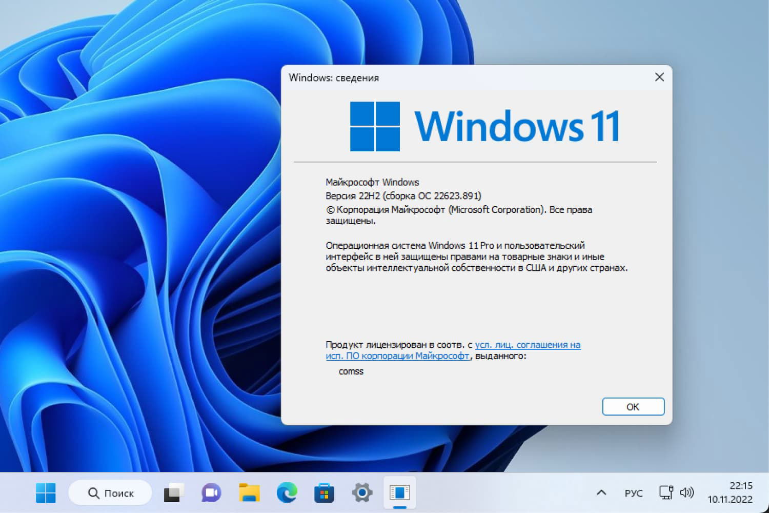 Windows 11, Версия 22H2 (Сборка ОС 22623.891)