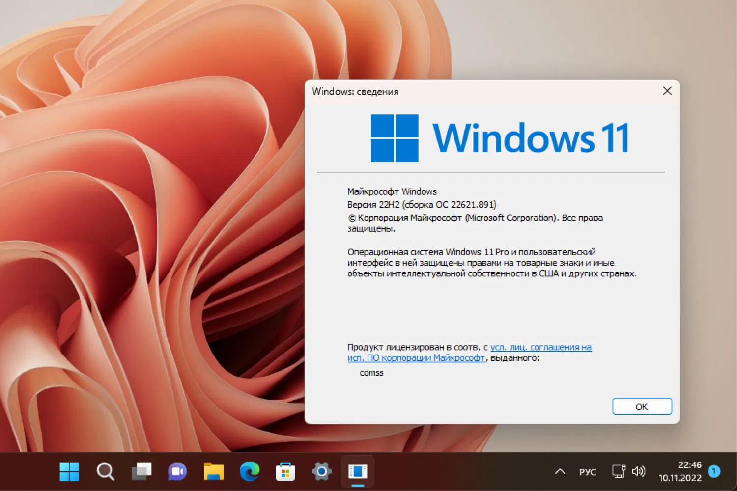 Windows 11, Версия 22H2 (Сборка ОС 22621.891)