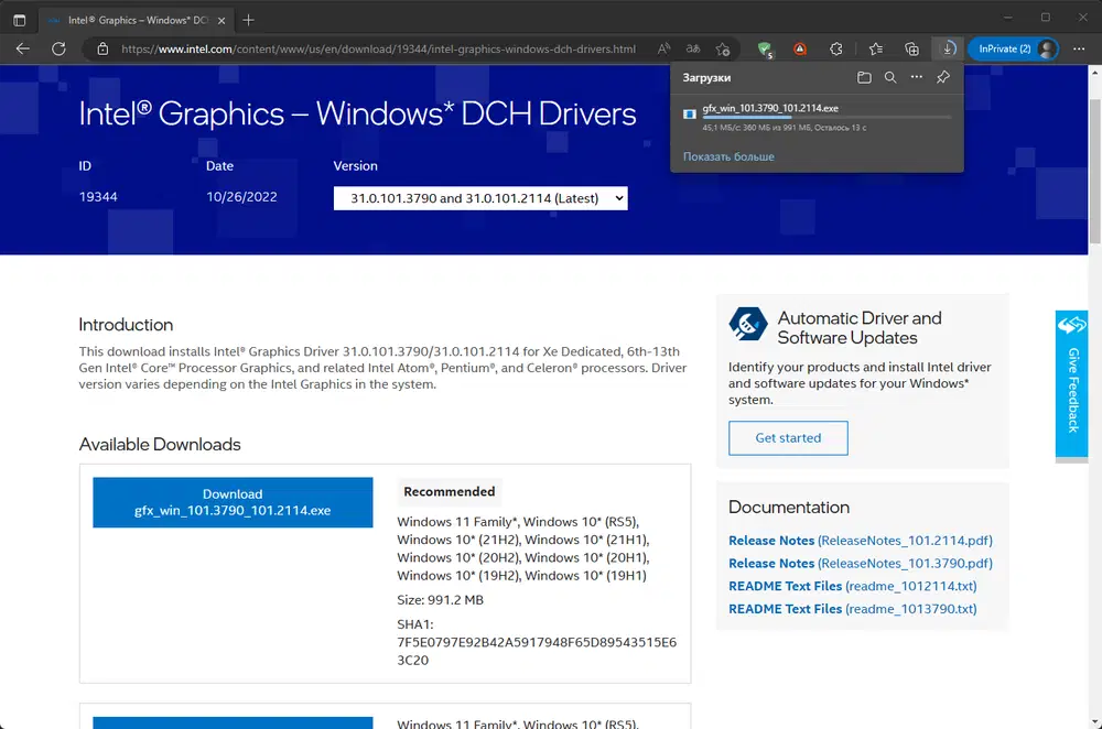 Вы можете скачать последние версии драйверов и ПО Intel на нашем сайте: Intel Graphics Drivers, Intel Arc Graphics Driver, Intel Network Adapter Driver, Intel Wi-Fi Drivers, Intel Chipset Device Software, Intel Processor Diagnostic Tool, Intel Driver & Support Assistant.