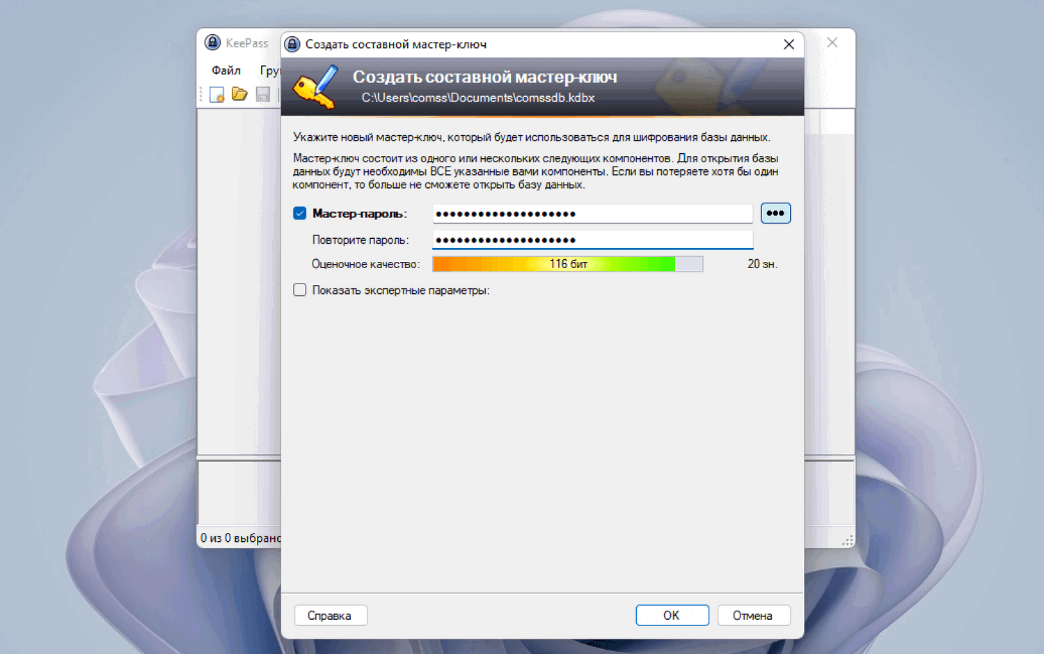 Первичный ключ, открывающий базу данных KeePass, имеет самое важное значение. Если основной пароль слабый, то высока вероятность того, что потенциальный злоумышленник сможет использовать полный перебор или даже просто угадать пароль.