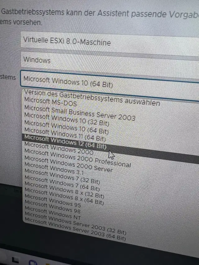 Уже в этом году внимательные пользователи VMware vSphere 8 заметили, что приложение указало Windows 12 (64-разрядную версию) в качестве одной из доступных гостевых систем.
