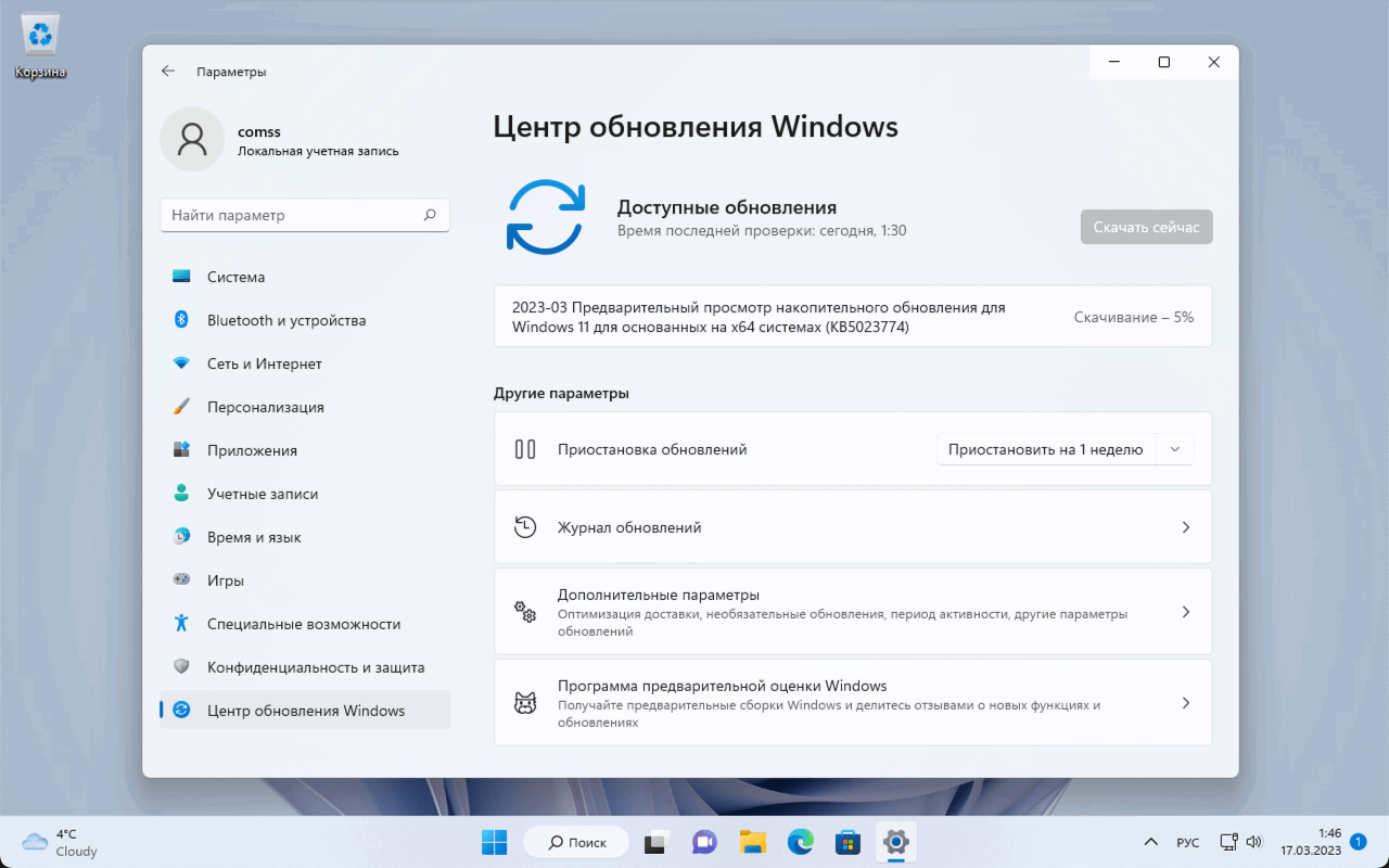 Когда вы увидите, что доступно 2023-03 Предварительный просмотр накопительного обновления для Windows 11 для основанных на x64 системах KB5023774 нажмите Скачать и установить.
