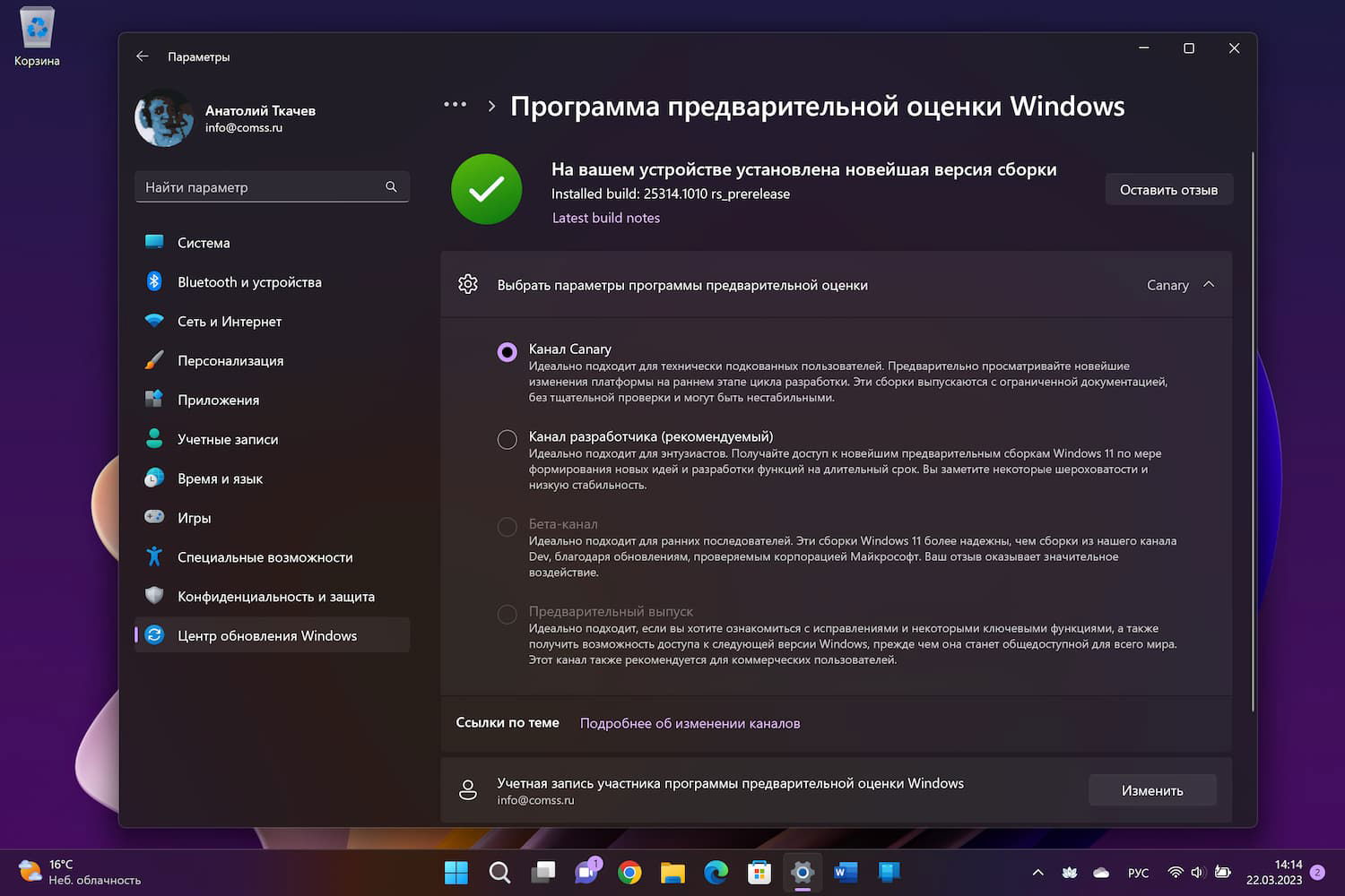 Новая экспериментальная функция позволяет пользователям решать, хотят ли они устанавливать предварительные обновления автоматически. На данный момент эта опция доступна исключительно в Canary, а точнее в сборке 25314. Функция также присутствует в сборке Windows 11 Build 25309 (Dev), но там для ее работы требуется пакет обновления стека версии 1101.2303.8011.0.