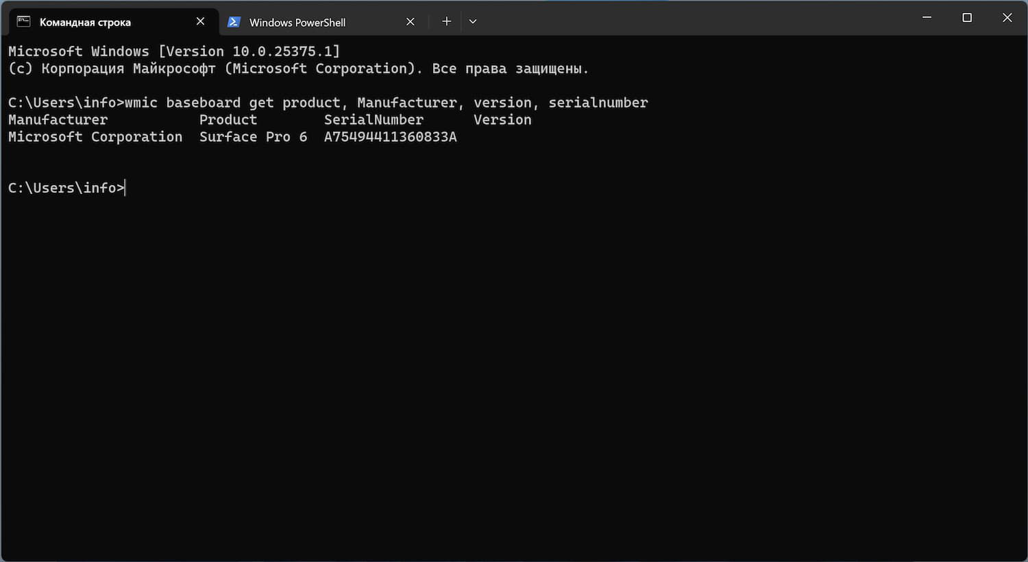 wmic baseboard get product, Manufacturer, version, serialnumber