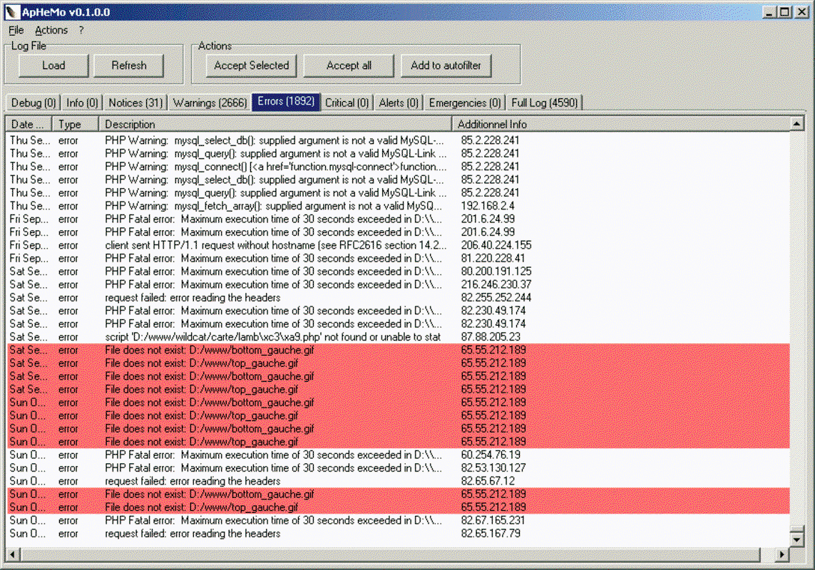 ApHeMo (Apache Health Monitoring) – это инструмент для анализа состояния сервера Apache HTTP. ApHeMo позволяет администраторам улучшить безопасность и надежность и быстро обнаруживать атаки хакеров (сканирование, потенциальные бэкдоры). Это незаменимый инструмент для администраторов выделенных серверов.