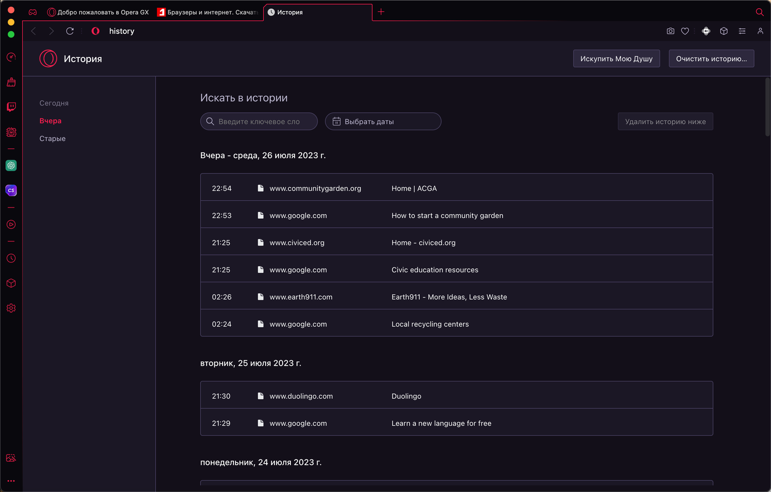 Функция доступна на странице История (opera://history) по ссылке Искупить Мою душу.