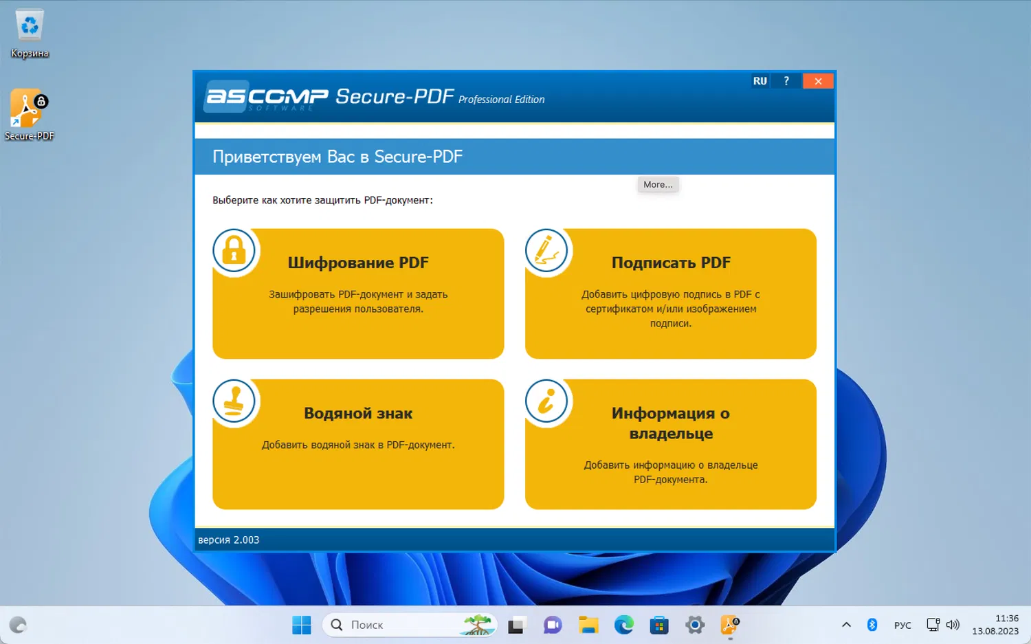 Основные возможности ASCOMP Secure-PDF Professional