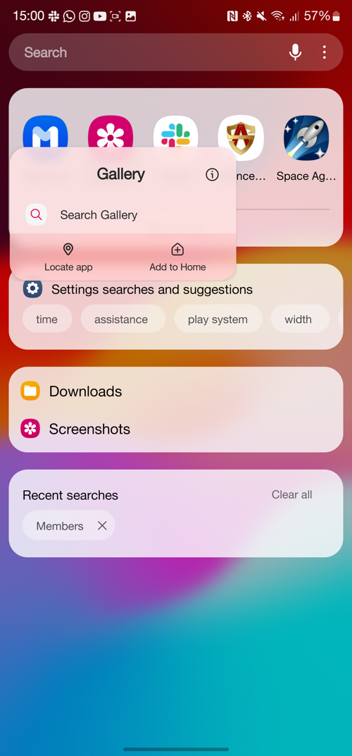 - Быстрые действия для приложений: Когда приложение появляется в результатах поиска, можно коснуться и удерживать иконку приложения, чтобы быстро получить доступ к действиям, которые можно выполнить с помощью этого приложения.