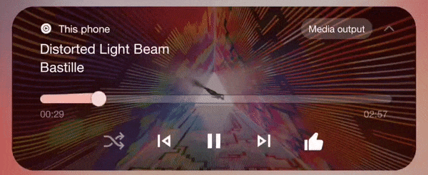 - Улучшенное отображение обложек альбомов: При воспроизведении музыки или видео обложка альбома будет полностью покрывать медиа-контроллер в панели уведомлений, если приложение, воспроизводящее музыку или видео, предоставляет обложку.