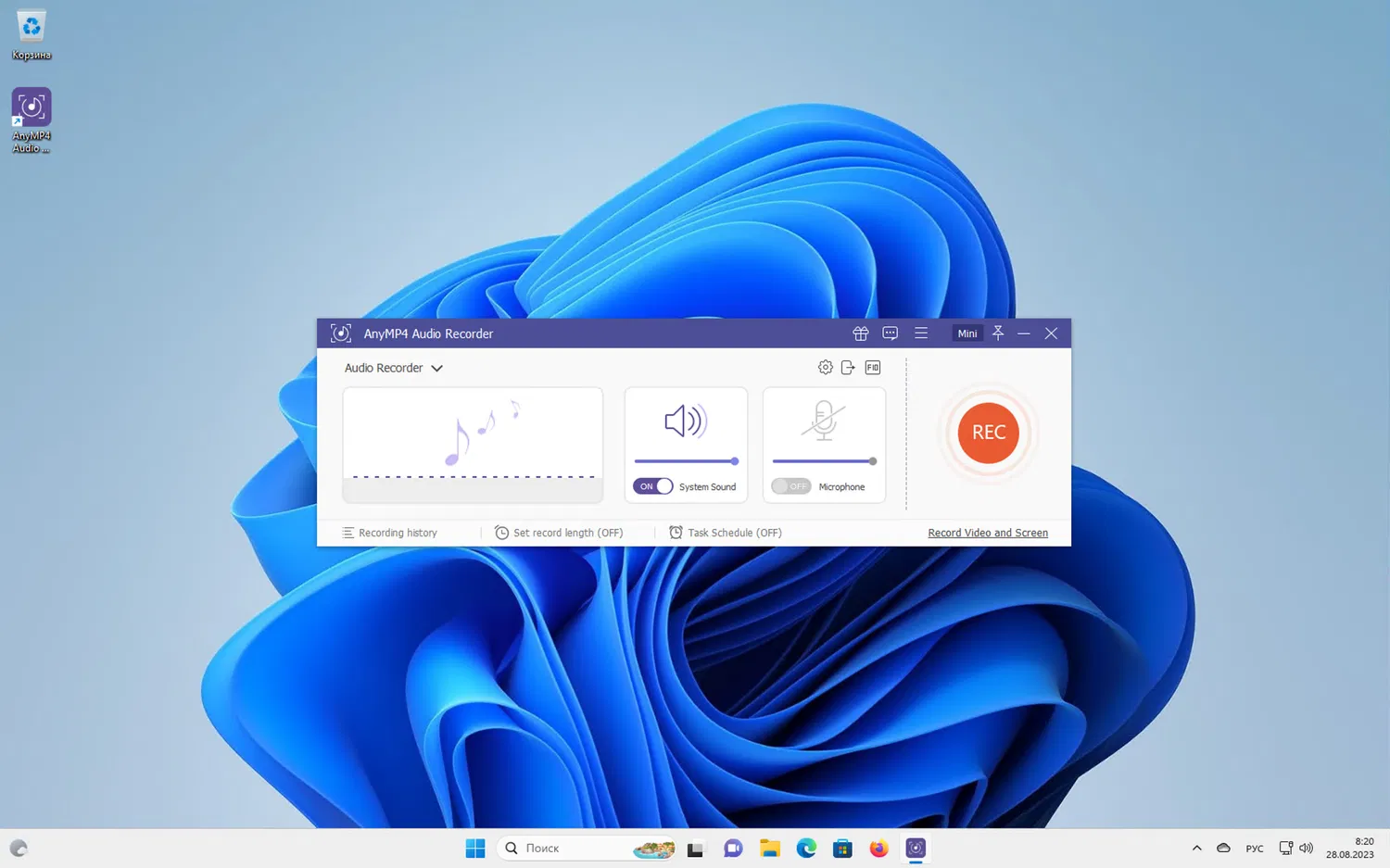 AnyMP4 Audio Recorder — это удобная программа для записи аудио на Windows. Она позволяет записывать все действия на экране вместе со звуком системы и микрофона на вашем компьютере. При этом звук системы и микрофона записываются отдельно. Вы можете использовать этот рекордер для устных презентаций, онлайн-встреч, учебных материалов и т.д.