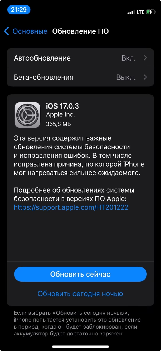 Эта версия содержит важные обновления системы безопасности и исправления ошибок. В том числе исправлена причина, по которой iPhone мог нагреваться сильнее ожидаемого.