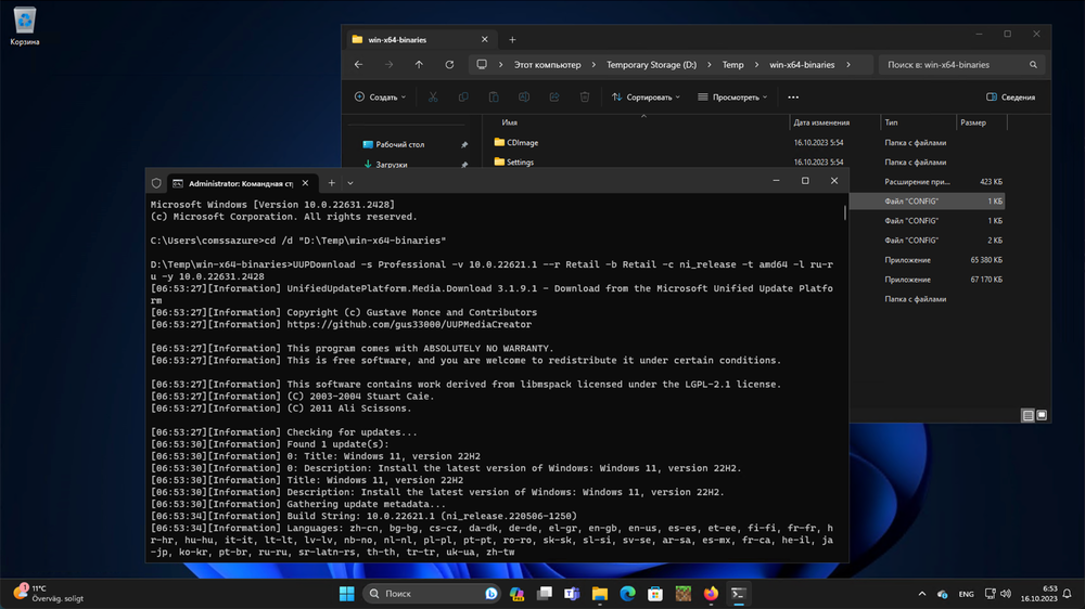 UUPDownload -s Professional -v 10.0.22621.1 --r Retail -b Retail -c ni_release -t amd64 -l ru-ru -y 10.0.22631.2428