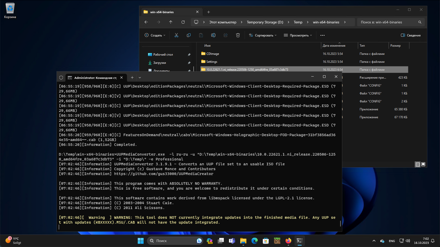 После завершения процесса, ISO-образ Windows 11 будет создан и готов к использованию.