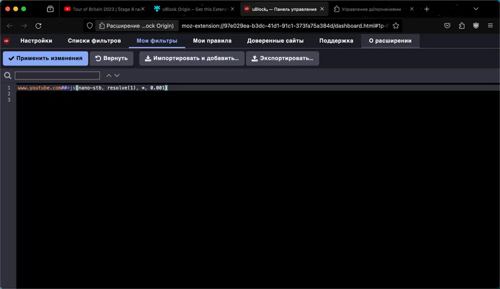 Вариант 2: Фильтр uBlock Origin