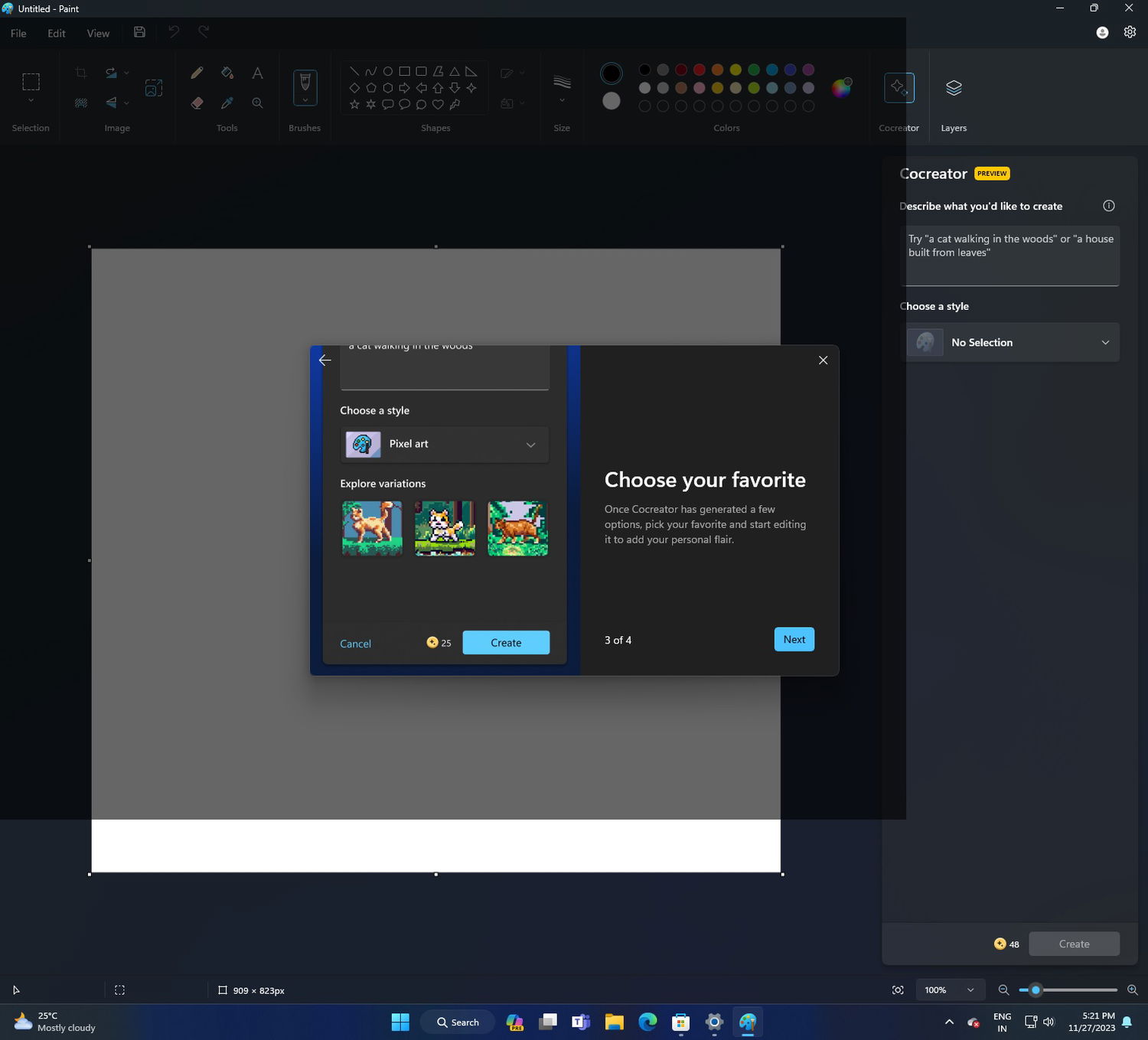 Как можно видеть на скриншотах, результаты работы ИИ оказались довольно точными и качественными. Вы также можете изучить другие варианты оформления на боковой панели Cocreator в Paint.