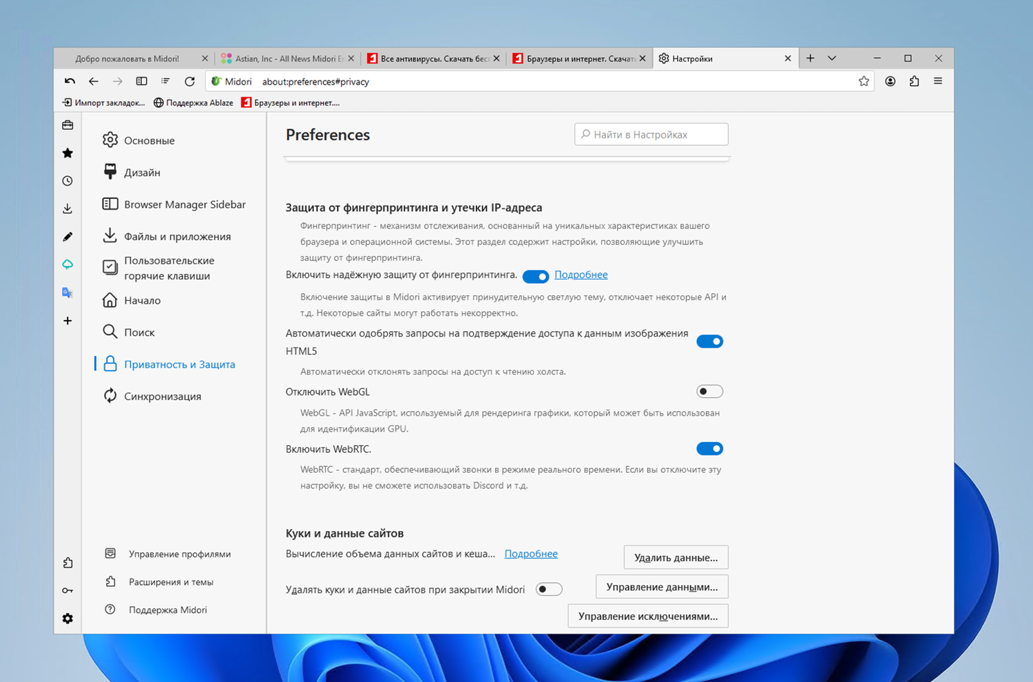 Midori 11 предлагает баланс между функциональностью и простотой, делая его подходящим выбором для тех, кто ищет быстрый и безопасный браузер с упором на защиту личных данных.