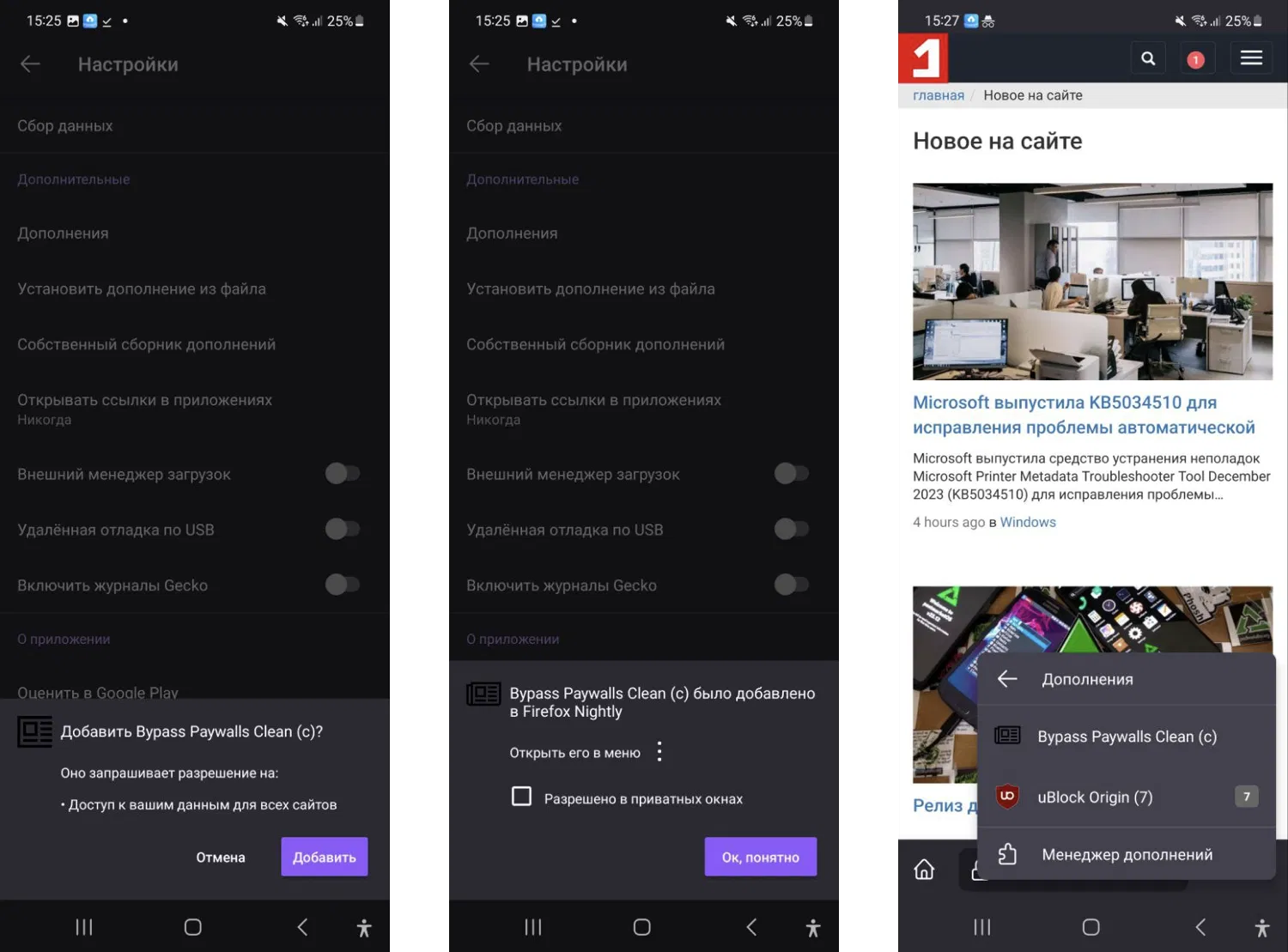 Firefox Nightly для Android теперь поддерживает установку дополнений из файлов. Это дает возможность устанавливать расширения, не доступные в официальном магазине, при условии, что они подписаны