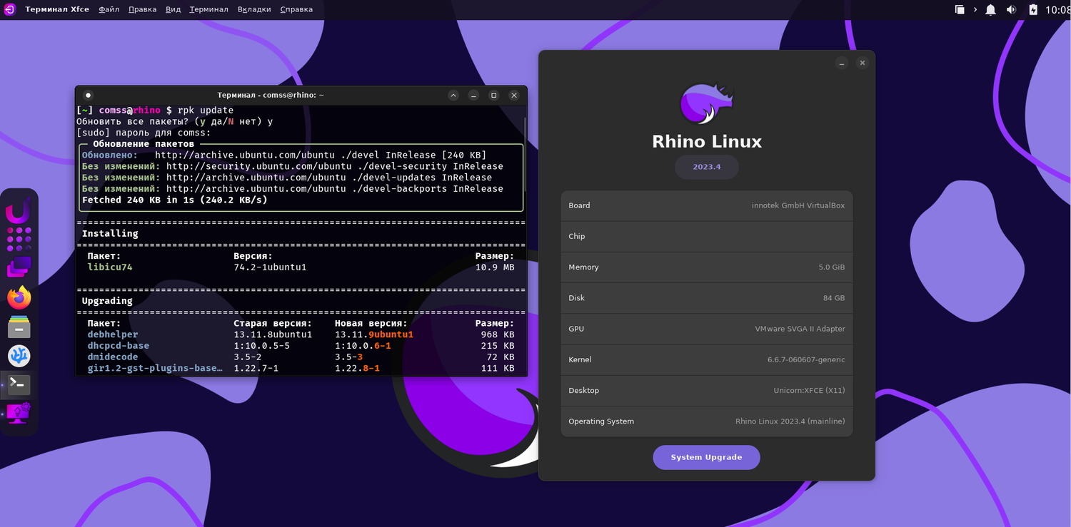 Если вы уже используете операционную систему Rhino, то вам нет необходимости выполнять новую установку. Являясь Rolling Release дистрибутивом, вам достаточно выполнить команду обновления для обновления системы.
