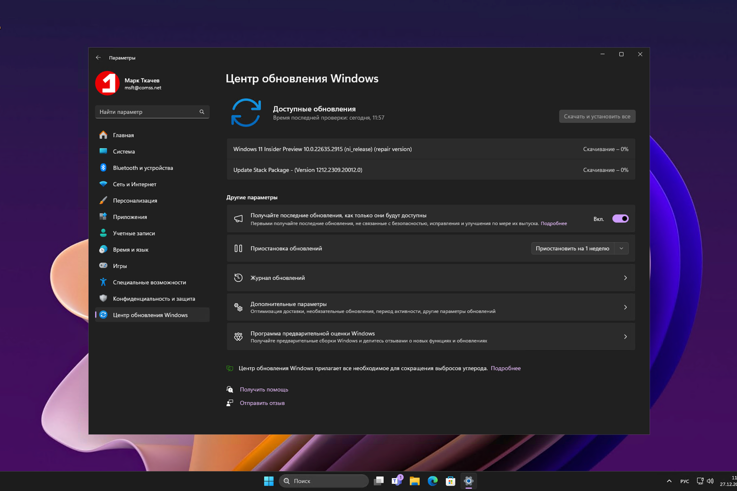 Переустановка Windows через Центра обновления Windows
