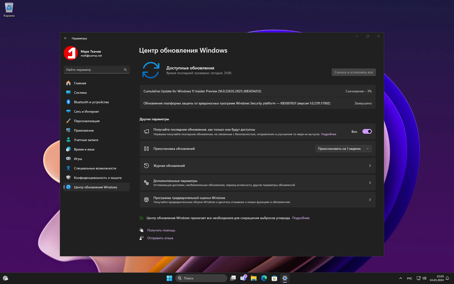 Примечание. Microsoft заблокировала установку обновлений для инсайдеров Windows 11 в России и Беларуси. Для установки Windows 11, Версия 23H2 (Сборка ОС 22635.2921) вы можете использовать наши DNS-серверы: Установка инсайдерских сборок Windows 11 с помощью Comss.one DNS.