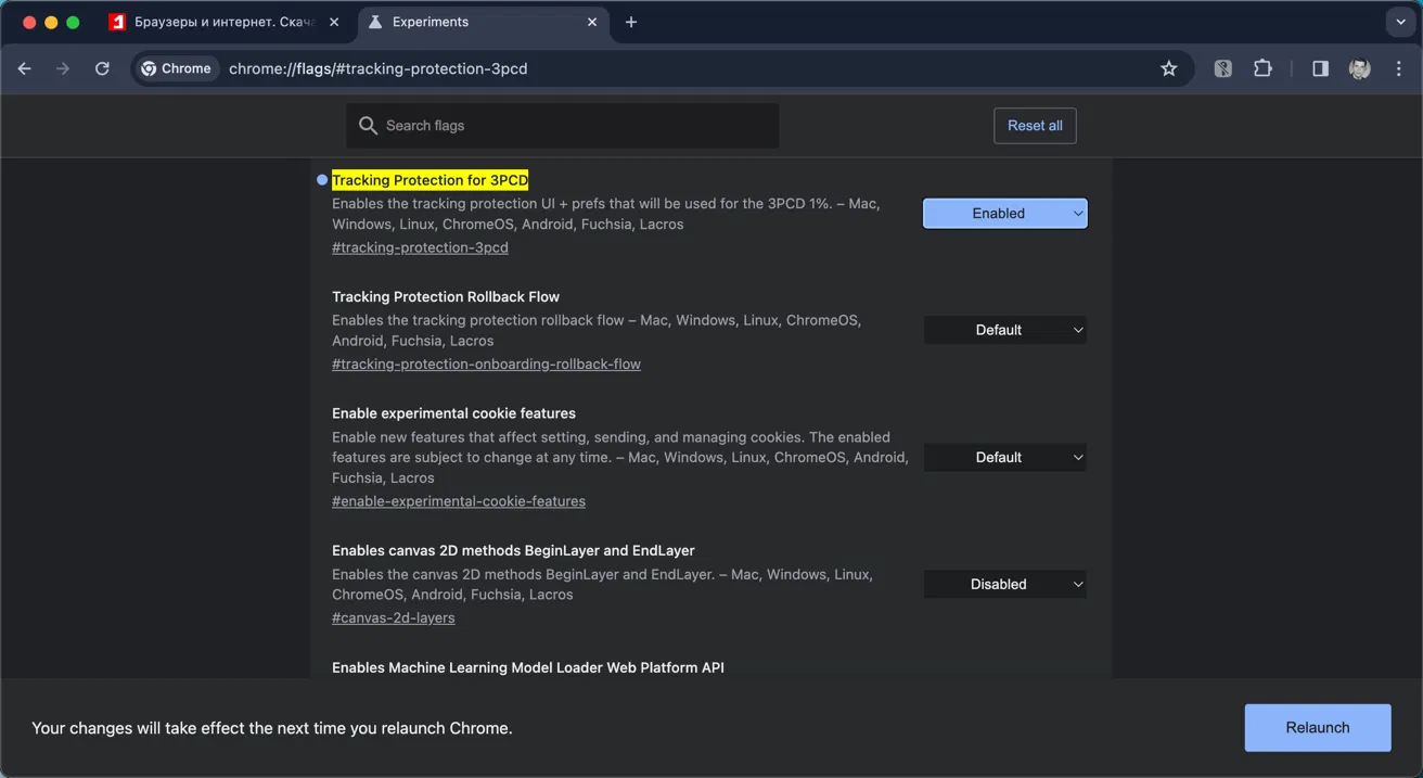 chrome://flags/#tracking-protection-3pcd - Установите для параметра Tracking Protection for 3PCD значение Enabled.