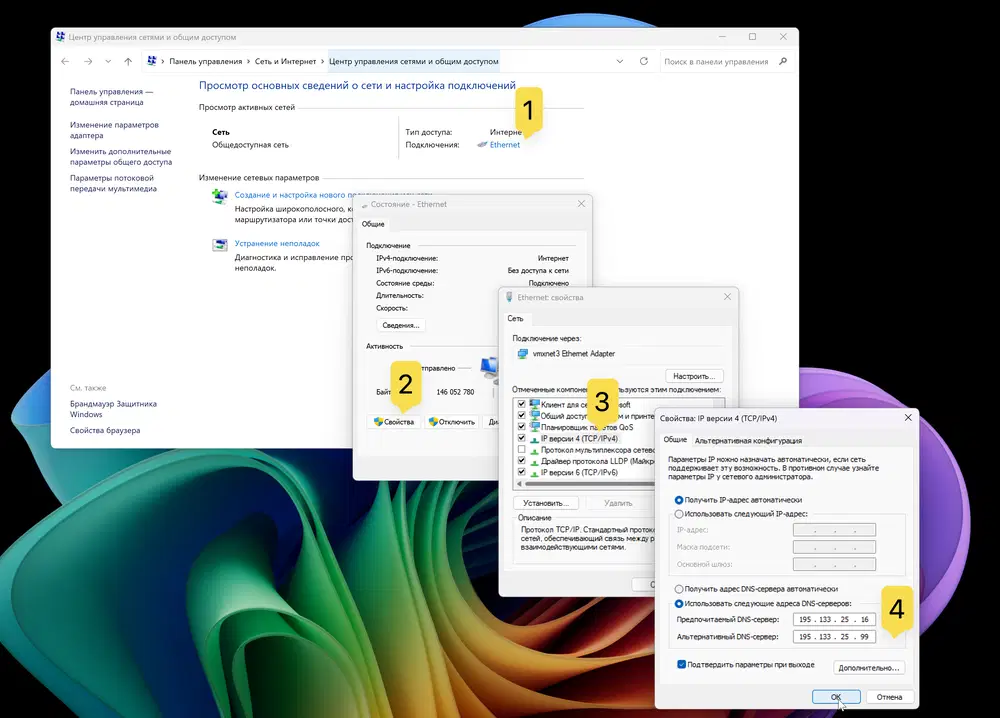 Настройка Comss.one DNS в Windows