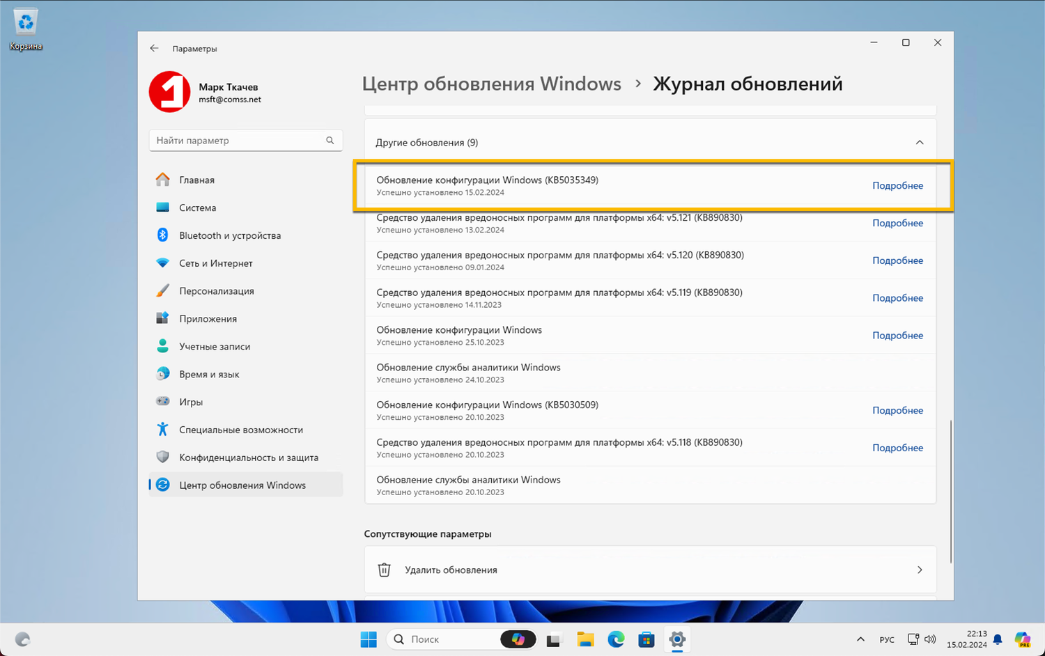 Вместе с этим обновлением также выпущено Обновление конфигурации Windows (KB5035349) за февраль, которое включает в себя ряд новых функций и улучшений: