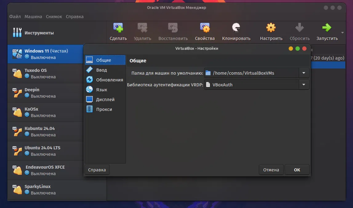 Не забудьте в настройках VirtualBox указать новый путь для создания и хранения виртуальных машин.