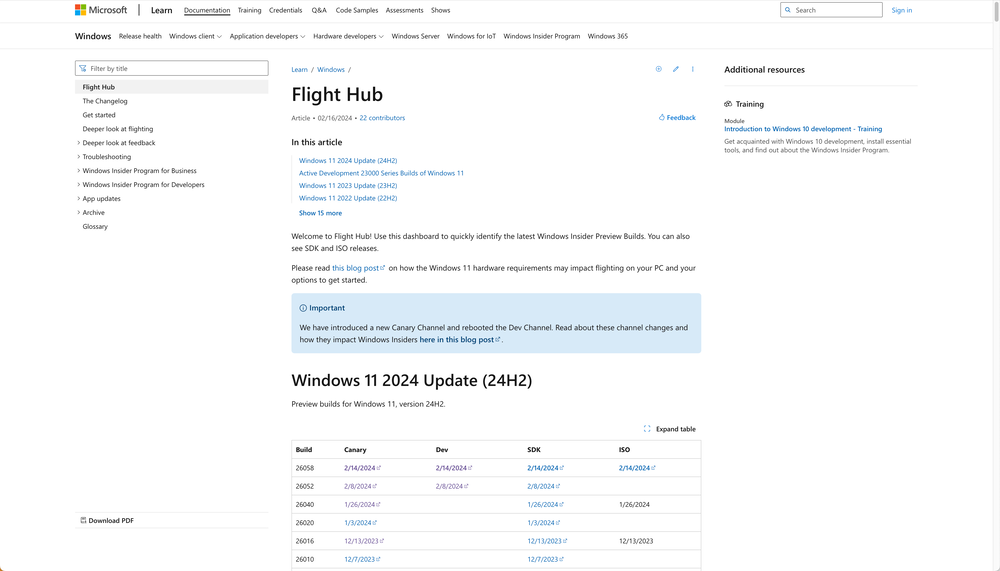 Microsoft обновила Flight Hub, свою официальную страницу для отслеживания предварительных сборок Windows Insider для каждого основного выпуска Windows, начиная с Windows 10 Anniversary Update и заканчивая Windows 11, версия 24H2. И, как и в предыдущих двух крупных релизах для Windows 11, вероятно, это обновление получит прямолинейное название — Windows 11 2024 Update.