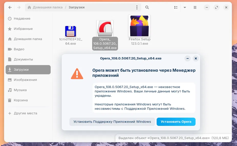 - Расширение базы данных для обнаружения инсталляторов популярных Windows-приложений и игр, что позволяет предложить пользователям альтернативы из встроенного магазина приложений, обеспечивая легкость установки и наилучшую совместимость. Разработчики расширили встроенную базу данных для обнаружения файлов установщиков популярных приложений и игр для Windows. Теперь он поддерживает более 100 приложений, предоставляя еще более индивидуальные рекомендации по альтернативе загрузке исполняемых файлов Windows. Например, при запуске установщиков Windows для таких приложений, как браузер Opera или Todoist, теперь вам будет предложено установить их собственные версии для Linux из встроенного магазина программного обеспечения. Это еще больше упрощает получение наиболее совместимых версий этих приложений для обеспечения наилучшего взаимодействия с ОС Zorin.