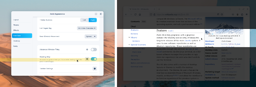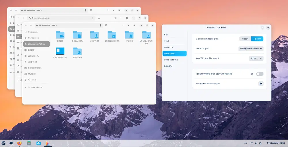 Новая опция размещения окон в Zorin Appearance
