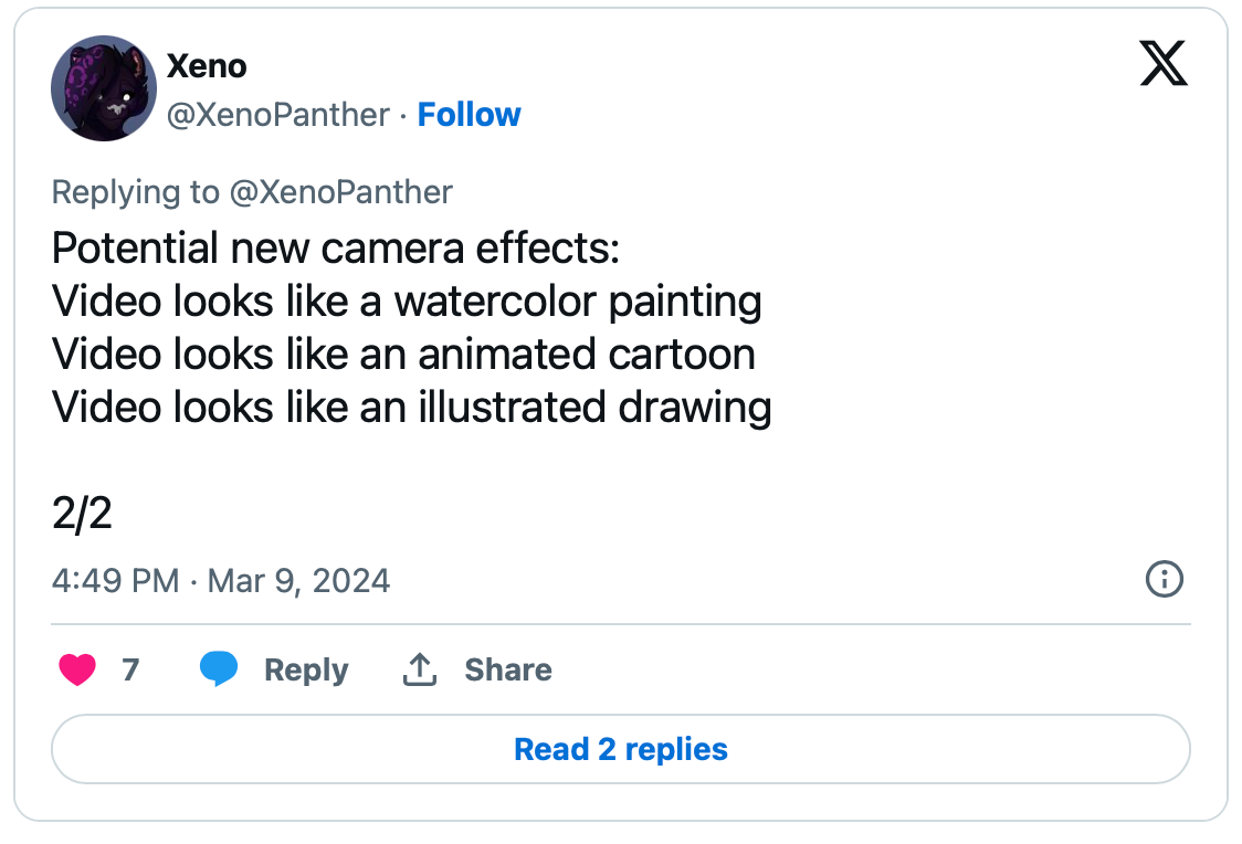 Зак Боуден (Zac Bowden) из Windows Central утверждает, что эти фильтры являются частью «расширенных эффектов Studio Effects» для Windows 11, которые должны появиться позже в этом году в Windows 11, версия 24H2 вместе с «ИИ-Проводником» и другими функциями на основе ИИ. Microsoft, похоже, также работает над специальной кнопкой на панели задач для эффектов Windows Studio (она пока не работает).
