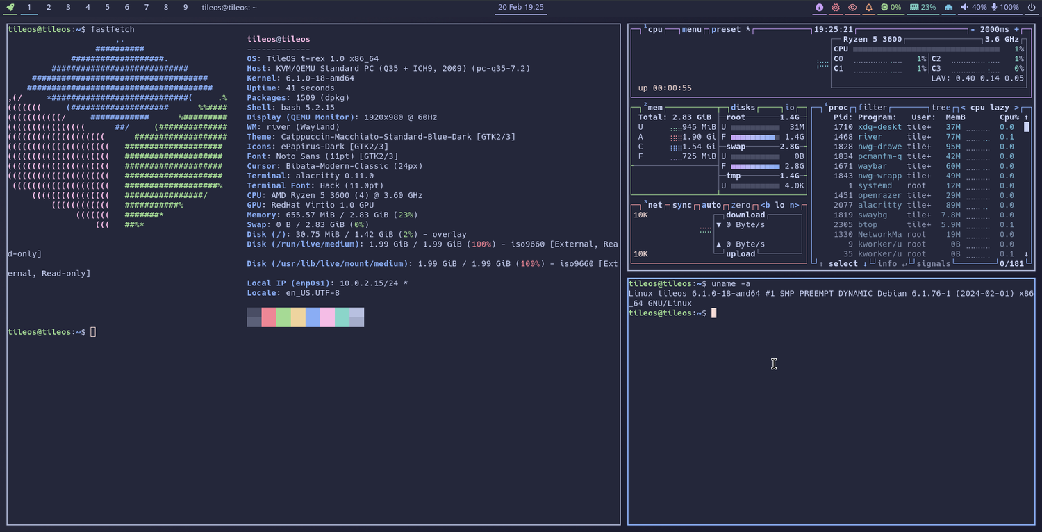 TileOS 1.0, новая версия Linux-дистрибутива, ориентированного на энтузиастов тайлинговых оконных менеджеров, была представлена. Основанная на стабильной ветке Debian, TileOS предлагает предварительно настроенную среду рабочего стола на основе менеджеров окон Sway или River и композиторов Wayland. TileOS 1.0 включает в себя поддержку ядра Linux 6.6, свежие графические драйверы и широкий спектр драйверов устройств. Источник