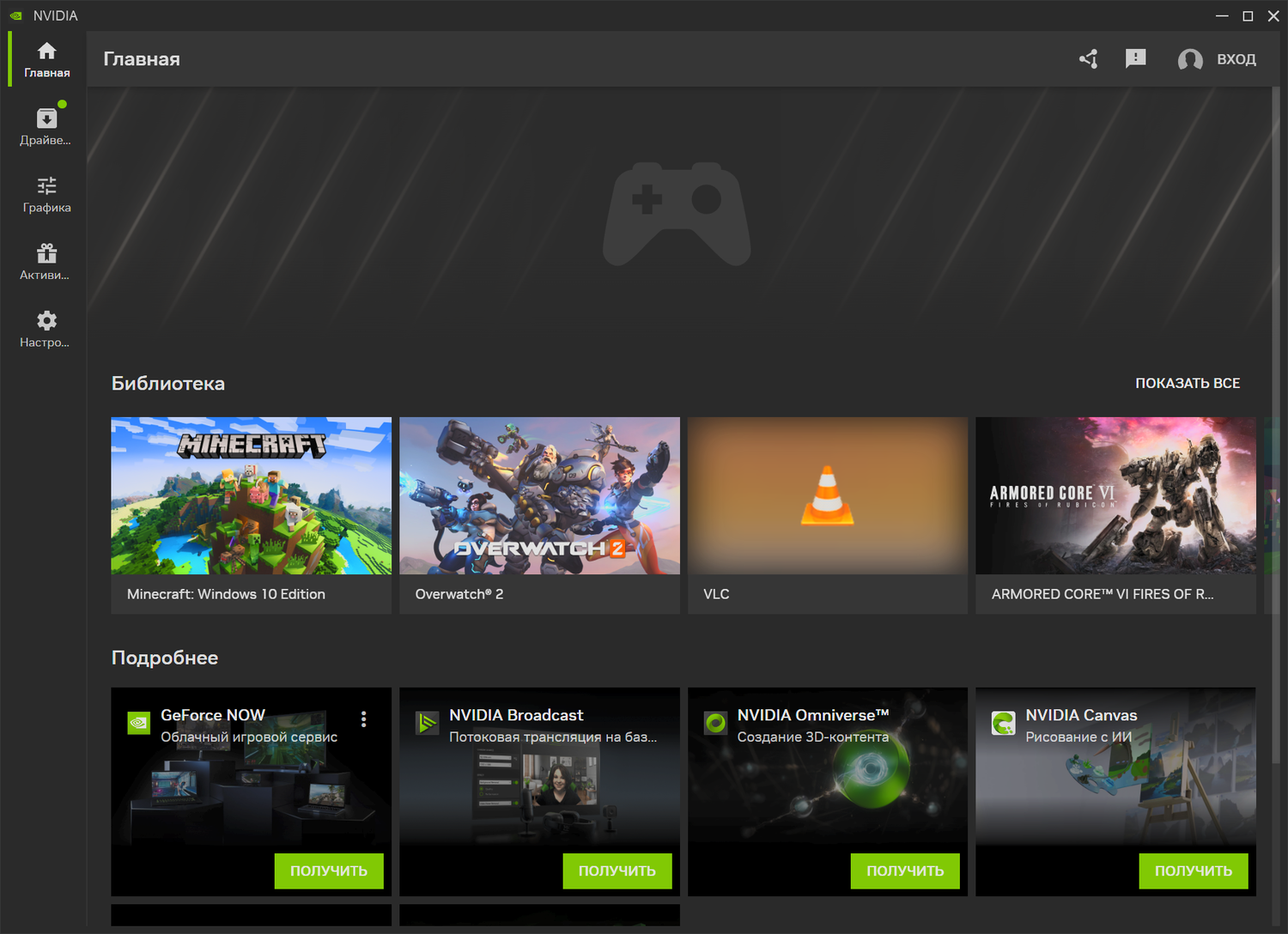 Последнюю версию драйвера также можно установить с помощью нового Приложения NVIDIA или NVIDIA GeForce Experience. Перейдите в меню "Драйверы" и нажмите "Проверить наличие обновлений".