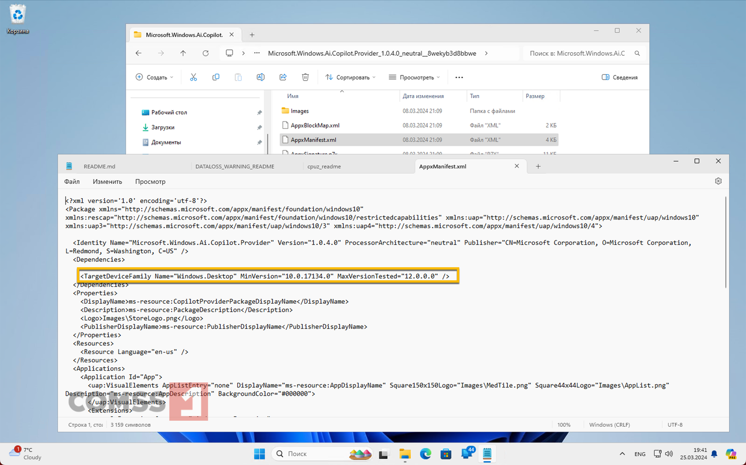 Файл AppxManifest.xml содержит еще один интересный момент. Он устанавливает совместимость приложения. В качестве минимальной версии указана Windows 10, а максимальной — Windows 12.0.0.0.