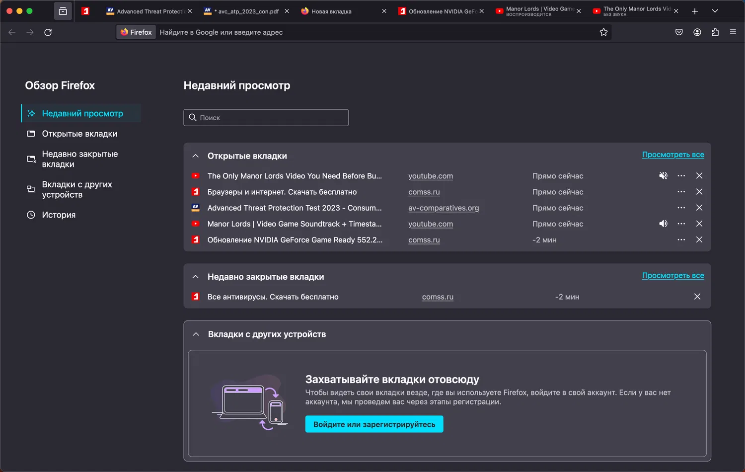 Firefox View получает еще одно улучшение — теперь поддерживаются индикаторы вкладок для открытых вкладок. Так, вкладки, на которых воспроизводится медиа, будут иметь иконку динамика, с помощью которой вы можете быстро включить или выключить звук вкладок, даже если они находятся в разных окнах. Индикаторы вкладок также доступны для закладок и вкладок с уведомлениями.
