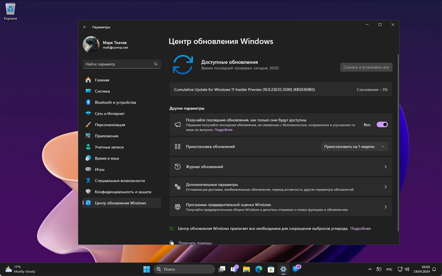 Примечание. Microsoft заблокировала установку обновлений для инсайдеров Windows 11 в России и Беларуси. Для установки Windows 11, Версия 23H2 (Сборка ОС 22635.3500) вы можете использовать наши DNS-серверы: Установка инсайдерских сборок Windows 11 с помощью Comss.one DNS.